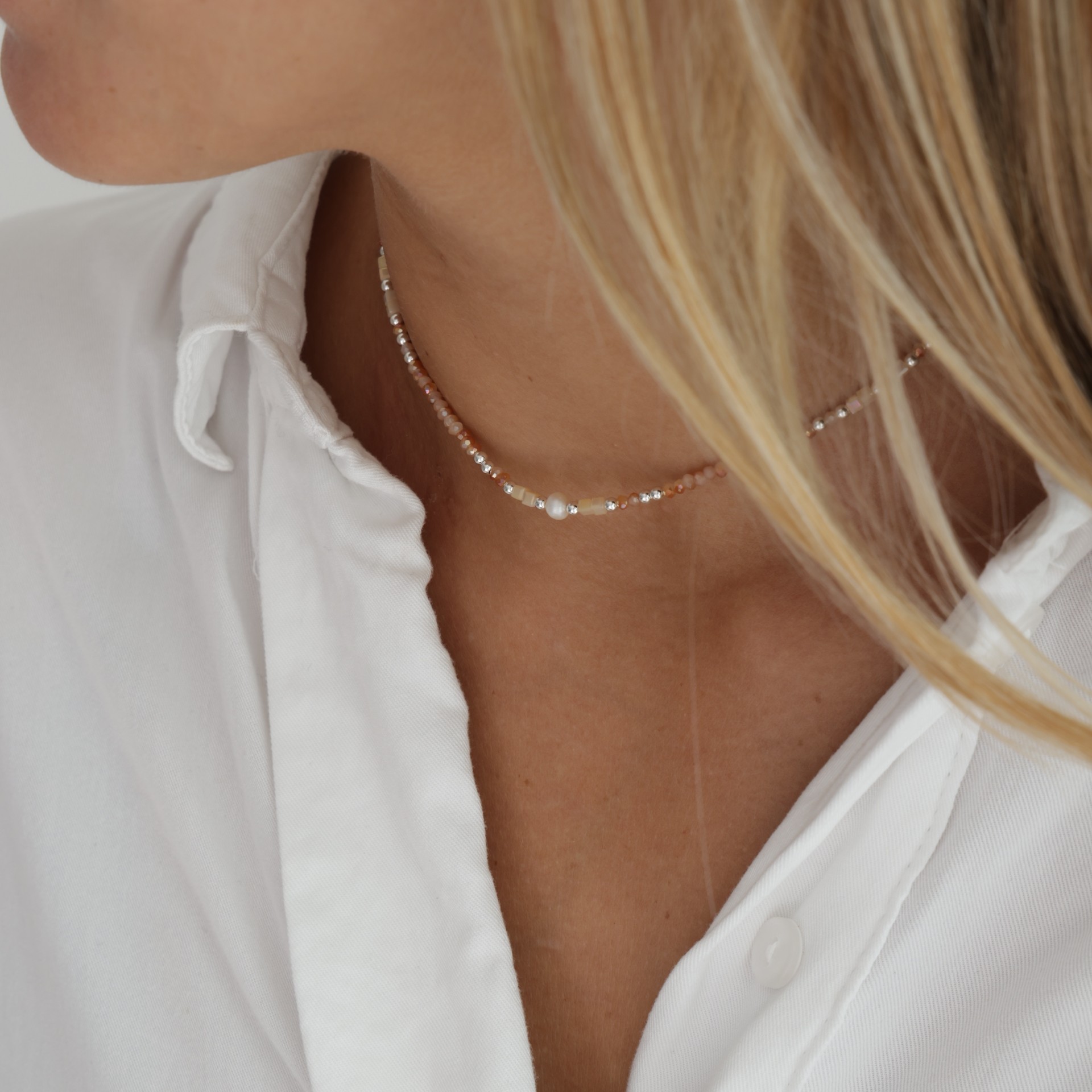 La gargantilla mide: 30 cm de largo, y además trae una cadenita de 12 cm para poder extenderla