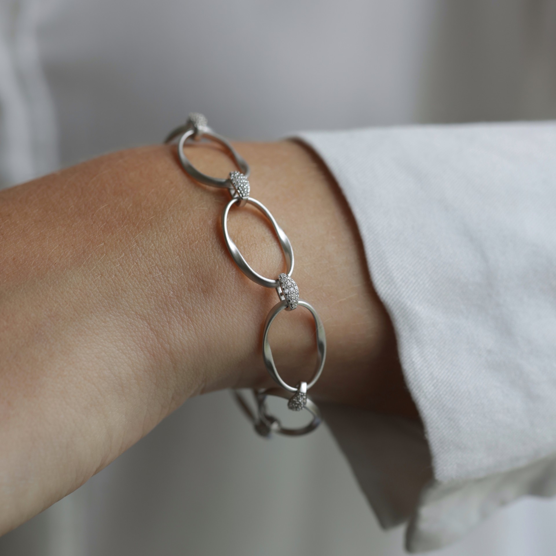 La pulsera mide: 1.3 cm de ancho y 18.5 cm de largo, y además trae una cadenita de 2.5 cm para poder extenderla