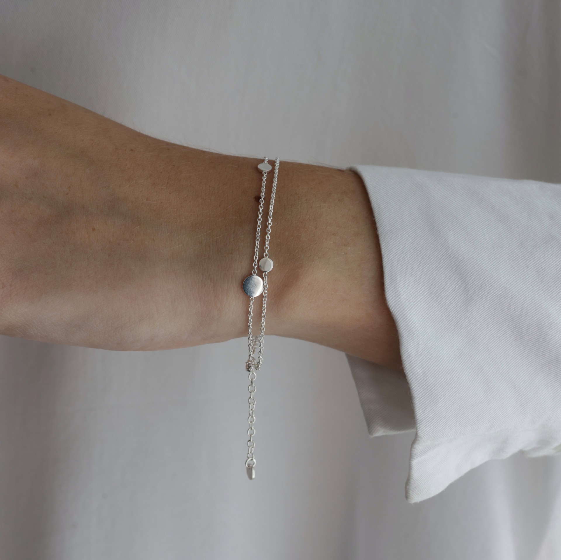La pulsera mide: 16.5 cm de largo, y además trae una cadenita de 3 cm para poder extenderla