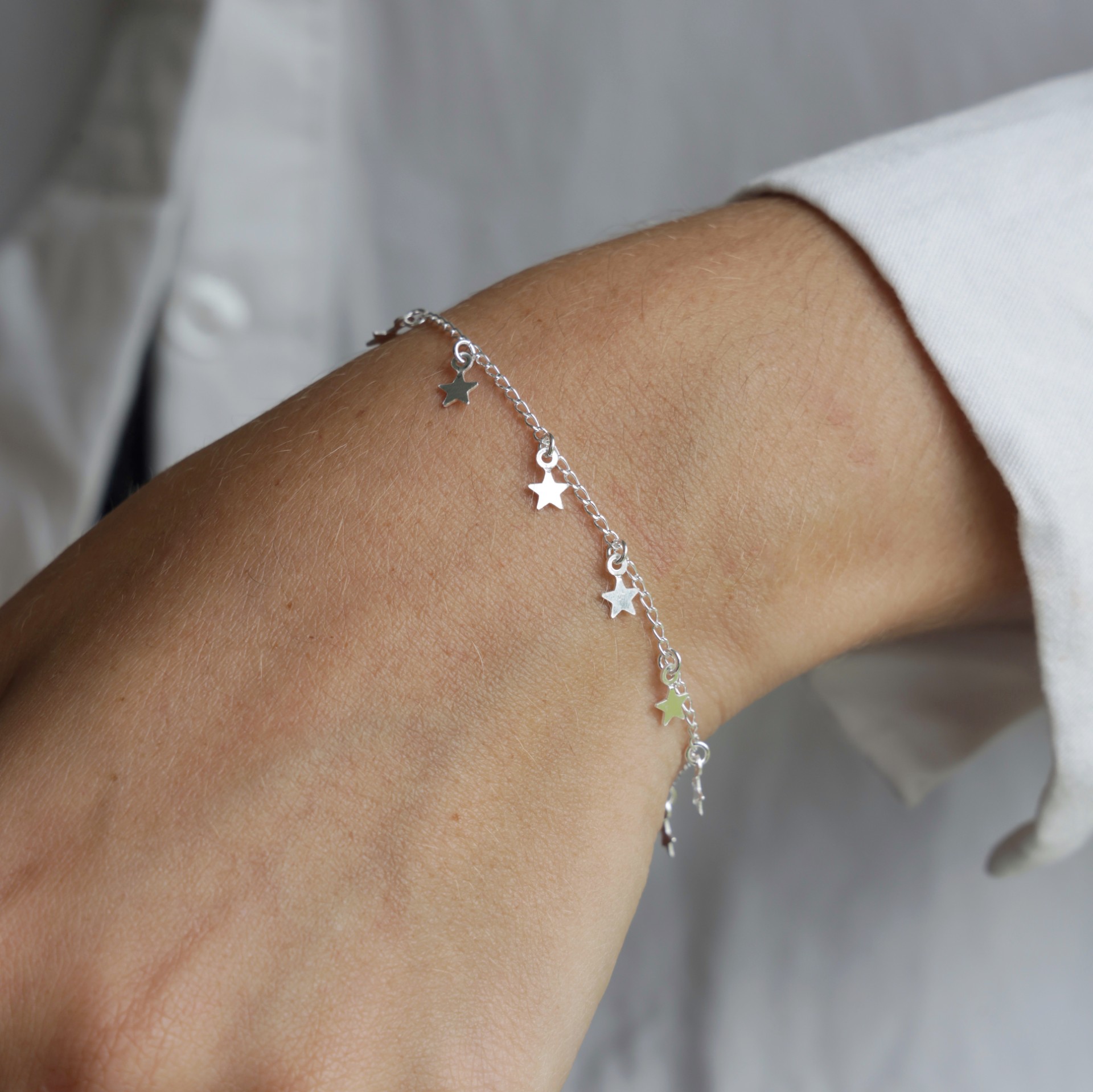 La pulsera mide: 16.5 cm de largo, y además trae una cadenita de 3 cm para poder extenderla